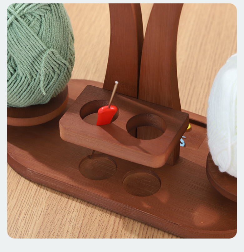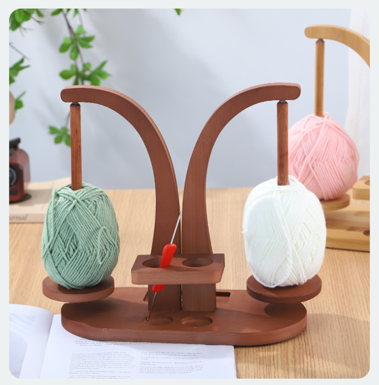 ブラケット付きダブルサポート木製スプールラックウールラック回転式マグネットサスペンションウールラック家庭用糸ラック